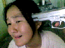 Wedy's taking the hit. Heh not much courage there eh? This whole thing's turning into a Taiwan-show-lookalike freakshow. But kids, don't do this at home.